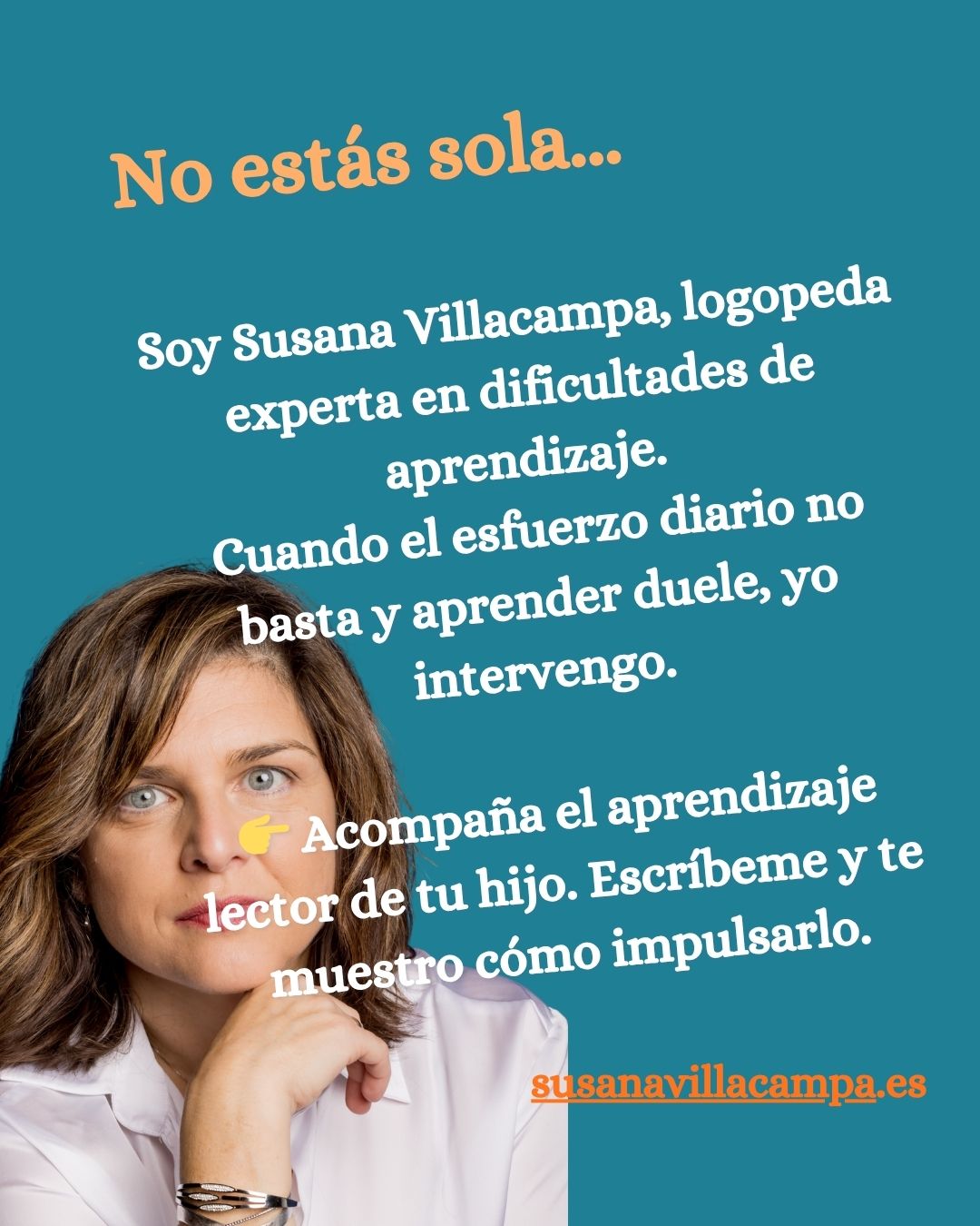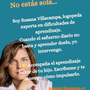 Soy Susana Villacampa –Logopeda– experta en dificultad de aprendizaje, Cuando el esfuerzo diario no basta y aprender duele, yo intervengo. Impulso el aprendizaje lector de niños y niñas con dificultades, aplicando estrategias personalizadas que transforman la frustración en avances reales.